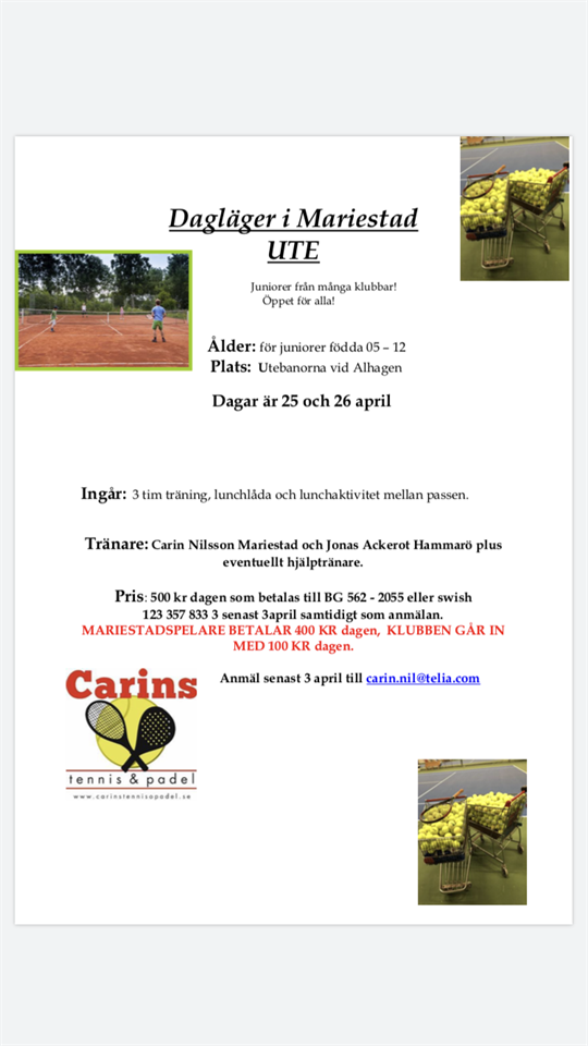 Är ni intresserade, hör av er till mig. Alla är välkomna! Ålder spelar ingen roll. Senast anmälan på söndag. Kristinehamns Tennisklubb 31 mar 2020 0kommentarer