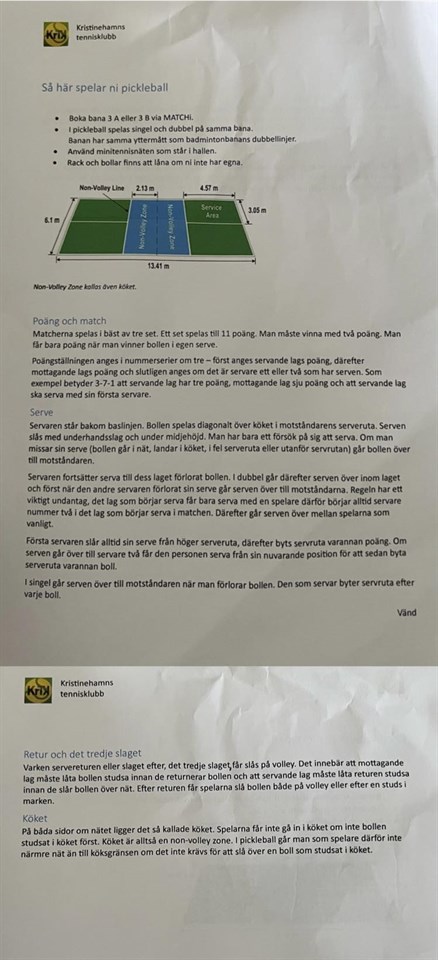 Den roliga racketsporten pickleball går nu att spela i tennishallen. All information om hur ni går tillväga för att boka bana och regler finns bifogade i bilden. Kristinehamns Tennisklubb 22 feb 2024 0kommentarer