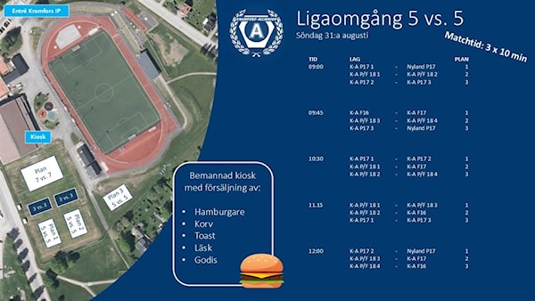 Observera att alla matcher kommer att spelas på B planen och 5-manna planen