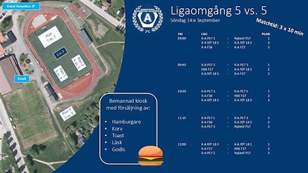 Alla matcher kommer att spelas på A-planen och 5-manna planen