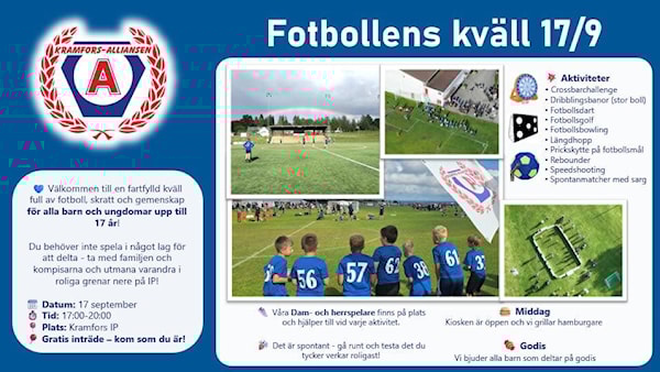 Nu på onsdag 17/9 annordnar vi "Fotbollens kväll" på Kramfors IP.