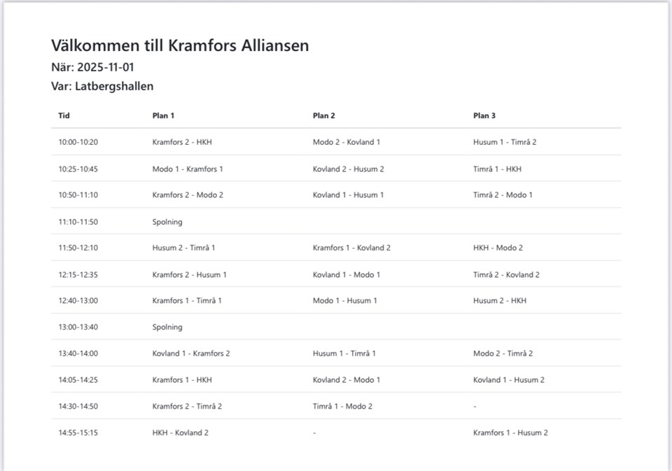 | Sammandrag U11 i Kramfors | 15 nov, 12:00 |