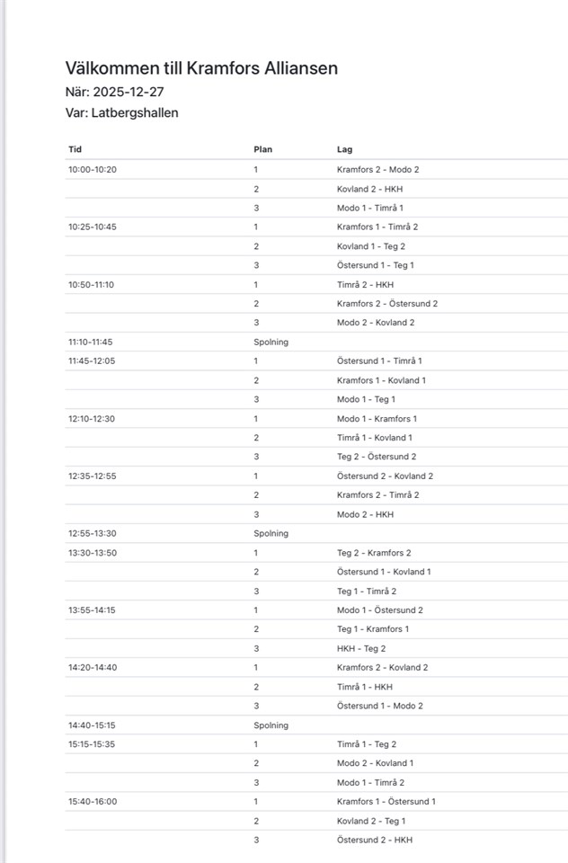 | Extrasammandrag U11 Skellefteå | 2 jan, 10:00 |