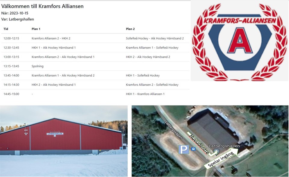 Nu är det U9 tur att spela sammandrag som arrangeras av Kramfors Alliansen. Gästande föreningar är AIK Hockey Härnösand, Kovland IF och Sollefteå Hockey. Kiosken är öppen under hela sammandraget. Välkomna! U11 30 okt 2023 0kommentarer