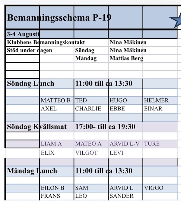 Bifogat finns bemanningsschemat från oss för den 3-4 augusti, 3 pass. Se tidigare mejl gällande arbetsbeskrivning etc.