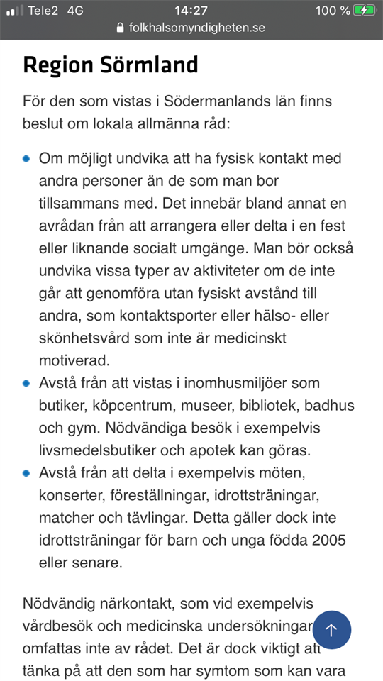 ?Skärpta allmänna råd för Södermanland? Ökad spridning av Covid-19, vilket betyder att vi alla nu måste hjälpas åt! All träning (samt ev matchspel) för aktiva födda 2004 och äldre ställs in från och med idag och framåt. För aktiva födda 2005 och senare fortsätter träningen med coronaanpassning enligt sunt förnuft och gällande restriktioner, dock är matcher/futsalsammandrag pausat tillsvidare. Tillsammans hjälps vi åt att minska smittspridningen genom att uppmana alla att stanna hemma vid minsta symtom, tvätta händerna, hålla avstånd och följa övriga restriktioner