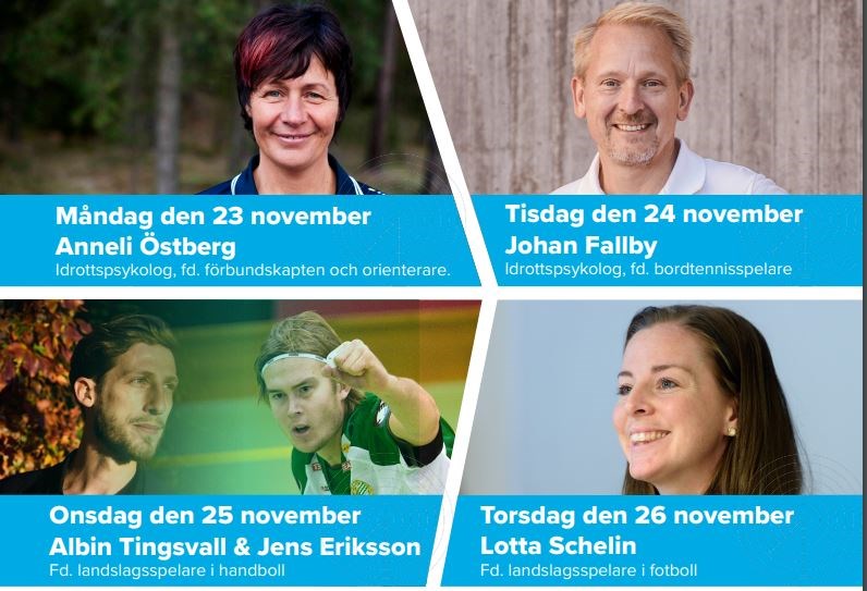 Denna vecka har RF-SISU Västra Götaland en föreläsningsvecka med fyra digitala föreläsningar på temat ledarskap. Måndag-torsdag kl. 19.30-21.00 erbjuder de kostnadsfria föreläsningar och har fått ihop ett grymt startfält av föreläsare: Måndag 23 nov: Annelie Östberg Tisdag 24 nov: Johan Fallby Onsdag 25 nov: Albin Tingsvall och Jens Olsson Torsdag 26 nov: Lotta Schelin Passa på och anmäl er via denna länk: