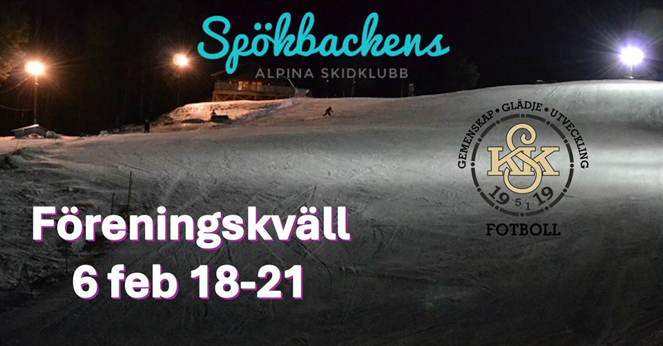 KSK Fotboll har fått inbjudan från Spökbacken Alpina om att delta på deras föreningskväll den 6 februari kl 18-21 Erbjudandet innebär att våra spelare och medlemmar får åka i skidor i Spökbacken utan kostnad för liftkort eller ev skidhyra under kvällen Det är begränsat antal platser och för att enskilda personer ska kunna ta del av erbjudandet krävs att de har fyllt i formuläret via denna länk i förväg och senast 1 februari. Formuläret fylls i en gång för varje person som ska delta Gör ni detta till en lagaktivitet - så använder ni inte formuläret Detta är ett bra tillfälle till att göra en lagstärkande aktivitet tillsammans med ert lag så om ni vill kan ni välja att organisera detta som en lagaktivitet (istället för att låta spelarna-föräldrar anmäla sig enskilt via formuläret) och skickar då kallelse via laget.se som till en vanlig träning (eller övrig aktivitet). Förslagsvis skickar ni även kallelsen till föräldrar. Senast den 1 februari kommenterar ni sedan på denna nyhet med antal deltagare från ert lag. Vi rekommenderar verkligen att ni tar chansen och gör detta istället för de eventuella träningar som är planerade denna kväll. Berikande för gruppen och individen att bryta av med något annat. Transport ut till Spökbacken löser man på egen hand - vi tipsar om att organisera samåkning i respektive lag tillsammans med era lagkompisar. Hamburgare och korv finns att köpa i Spökgrillen och kiosken håller öppet. läs mer om spökbacken här Ledarinformation 22 jan 0kommentarer