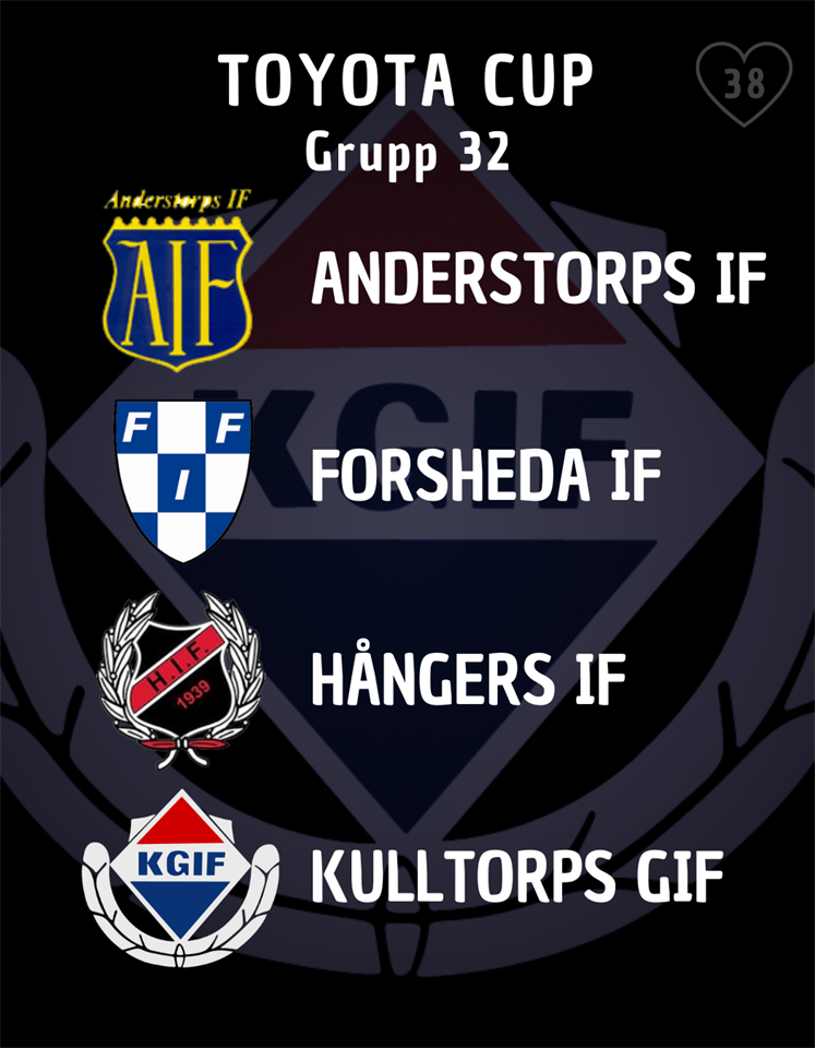 Grupperna i Toyota Cup har blivit lottade och vi ställs mot AIF, Forsheda och pånyttfödda Hånger i Grupp 32 med start i slutet av februari.