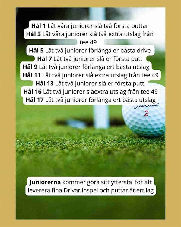 Hej. Alla juniorer som ska vara med och jobba ska samlas kl 7:30 för information. Vill man värma upp innan så får man vara där tidigare. Medtag klubbor.