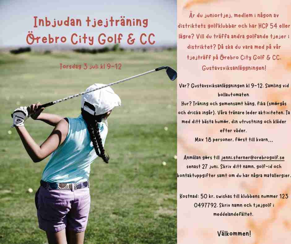 Örebro city bjuder in till en träningsdag för tjejer Det finns bara 15 platser så fundera inte för länge ! Anmäl dig med ett mail till Jenni.sterner@orebrogolf.se Breddgruppen 17 jun 0kommentarer