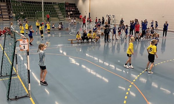 Morgonen började med att två rutinerade herrar, Håkan och Jörn tappert kröp runt A-hallen och tejpade linjer för minihandboll. Sedan fylldes det på med engagerade föräldrar som satts upp mål, sekretariat, fixade ett populärt café, info till kommande lag etc. Ett fantastiskt teamwork och engagemang!