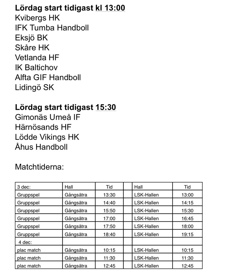 Hej alla goa föräldrar! Lägger ut lite tider inför arrangemanget vi har. Kolla gärna i flödet innan ni skriver vad ni kan tänka er att hjälpa till med så ni inte skriver upp er på samma sak och tid :) Cafeet 08:30-10:00 (Hämta kylvaror hos Moa innan) 10:00-11:30 11:30-13:00 EMP + matchklocka 2 pers behövs på varje pass 09:30 10:25 11:20 Matchvärdar (2st till varje pass) 8:30-10:00 Åse och Jörgen 10:00-11:30 11:30-13:00 Alla får hjälpas åt på första och sista passet med att göra iordning! Ha en fin helg!! Flickor 14 (Födda 2008) 22 okt 2022 14kommentarer