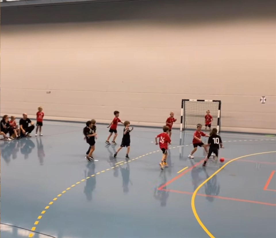 Ledarna Johanna , Tony och Lupco coachade våra 2 lag med 7 spelare i varje lag, alltså två avbytare. Perfekt. Alla fick spela mycket. Inga officiella resultat, men matcherna blev jämna och många olika målgörare. Målvakterna var strålande och ingen skotträdd och vi hittade vänsterhänta spelare som sköt skarpt.