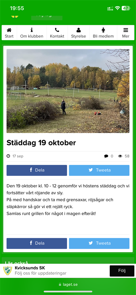 Klicka på bekräftelselänken i det mejl vi skickat dig för att börja ta emot uppdateringar från Kvicksunds SK F 2015/2016.