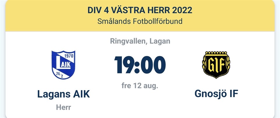Idag kl 19 kommer Gnosjö och gästar våra herrar på Ringvallen. Så passa på att ta er till Ringvallen, och om ni mot förmodan har förhinder kommer Smålänningen att livesända matchen. Lagans AIK 12 aug 2022 0kommentarer
