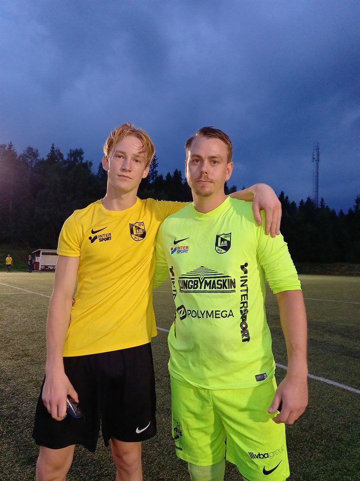 Förlust mot Hovshaga. 2-0 (2-0) Efter de 10 första har LAIK lite övertag genom tre bra hörnor, men i 10e min spelar Hovshaga in mot straffpunkten och nicken går i burgaveln och 1-0 lyser på resultat tavlan. I 23e minuten kommer Hovshaga i ett anfall och ett skott en bit utanför straffområdet smiter in vid stolproten till 2-0. Hovshaga har det mest av anfallsspelet, och LAIK har ett lång lag när man har boll. Hovshaga har några bra chanser som Erik får rädda, men i 41e min har LAIK en hörna som Nybbe nästan når men den rullar ut till inspark. Halvleken rullar ut och slutar 2-0. Andra börjar med lite bättre inställning och LAIK har lite mer boll.. LAIK spelar upp sig betydligt i andra men de riktiga målchanserna uteblir, ända till 66e då Sebastian B lobbar fram till William S som prickar ribban. Matchen böljar fram och tillbaka, och det är Erik som får göra några svettiga räddningar innan matchen slutar 2-0. Nu får LAIKarna ta med sig 2a halvleken till nästa match, och börja matchen på riktigt. På bilden, Erik som gjorde några svettiga räddingar och Melvin som slet på mittfältet.