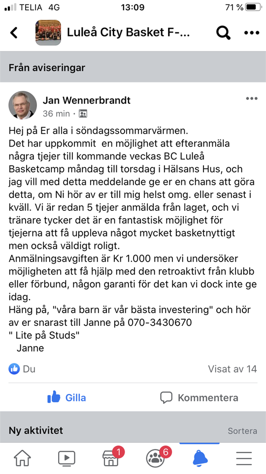Måndag 10 augusti Egen träning. Löpning/jogg 4 km. Onsdag 12 augusti 18.15-19.15 Gemensam fys. Samling vid uterummet vid golfängen. Söndag 16 augusti Egen träning intervaller. Info kommer. Måndag 17 augusti 18-19 Gemensam träning. Hälsans hus basketplan (utomhus) Onsdag 19 augusti 18-19. Fysträning inomhus på Gym 974, Hertsön. Vi kommer att börja ta närvaro från och med onsdag. Det är viktigt att ni som inte kan komma meddelar detta. Spelare som är på basketcamp kan hoppa över planerade träningar på måndag och onsdag (deltagande på campen ger närvaro på vår onsdagsträningen). Meddela tränare så att ni är på lägret. F06 9 aug 2020 0kommentarer