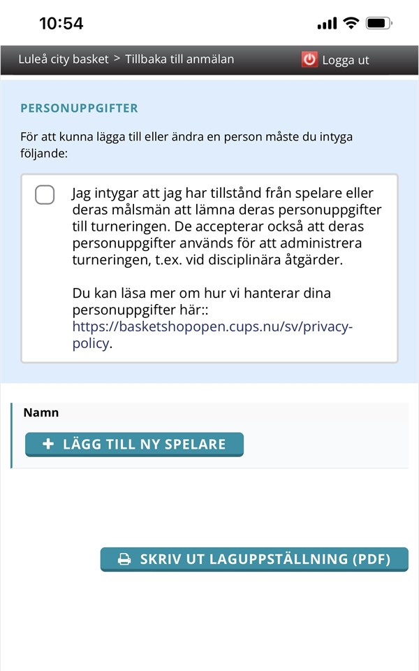 Håller på att registrera spelare till cupen. Har jag tillstånd av er att göra detta?