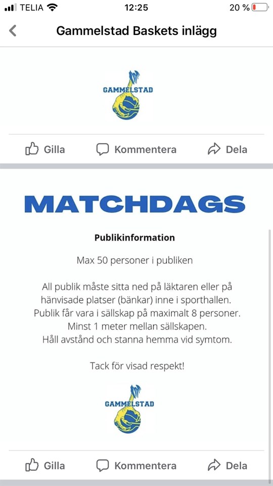 Pga covid är det inte tillåtet med publik på matchen imorgon. F06 15 jan 2022 0kommentarer