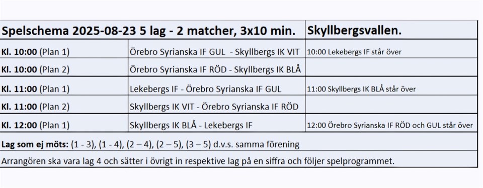 Hej! Det kommer droppa in lite kallelser under dagen. Första poolspelet den 23/8, Skyllbergs IK, spelschemat kommer läggas ut på laget.se. Vi har ett eget poolspel på Vretalunds IP den 7/9 som vi arrangerar. Kioskgruppen och arenagruppen får gärna börja prata ihop sig. Vi kallar även till föräldramöte den 17/9 kl 18-19:30. Vi kommer diskutera höstens träningar bl.a. träningssamarbete med P15. Ha en fin dag!