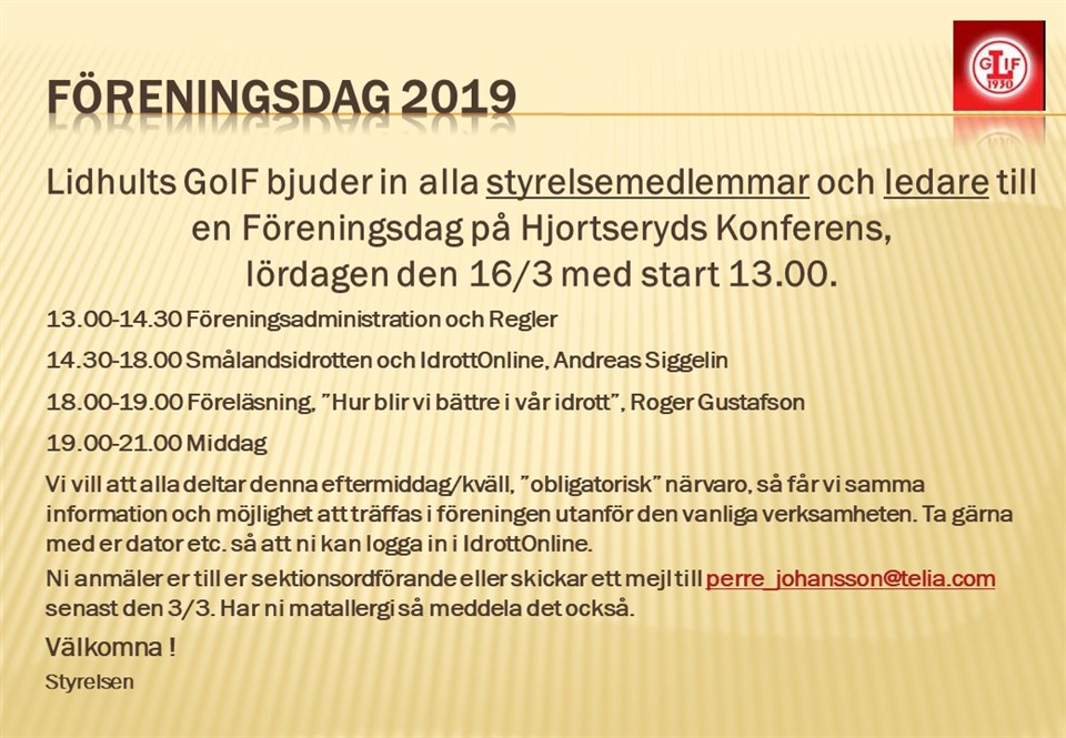 • Lidhults GoIFs Årsmöte 2019