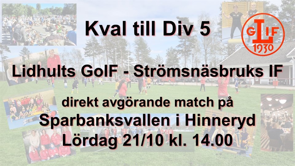 Efter en fantastisk säsong av våra unga seniorer kröns den av en sista match, direkt avgörande för ett avancemang till division 5. Vinnaren i matchen går med säkerhet till division 5 säsongen 2024, men även förloraren kan bli uppflyttad beroende resultat i andra kvalmatcher till division 3, 4 och 5. Vi hoppas att ni alla trogna supportrar vill komma och och heja på och hjälpa killarna till framgång. Kan ni inte komma till Sparbanksvallen i Hinneryd kan ni alltid följa matchen via appen Min Fotboll. Heja Lidhult !