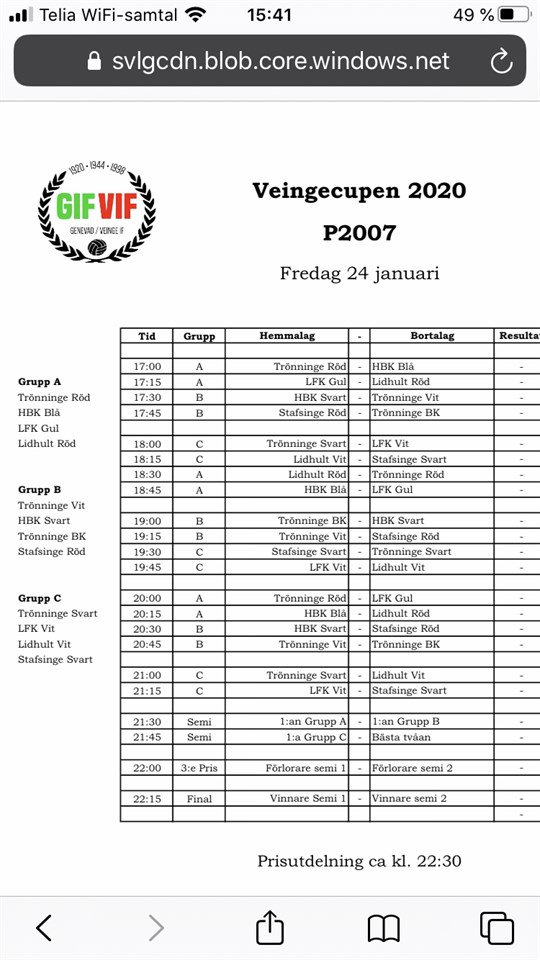 Samling 12,30 utanför sporthallen sön 19/1. Spelschemat för Veingecupen har kommit. PF-0708 12 jan 2020 0kommentarer