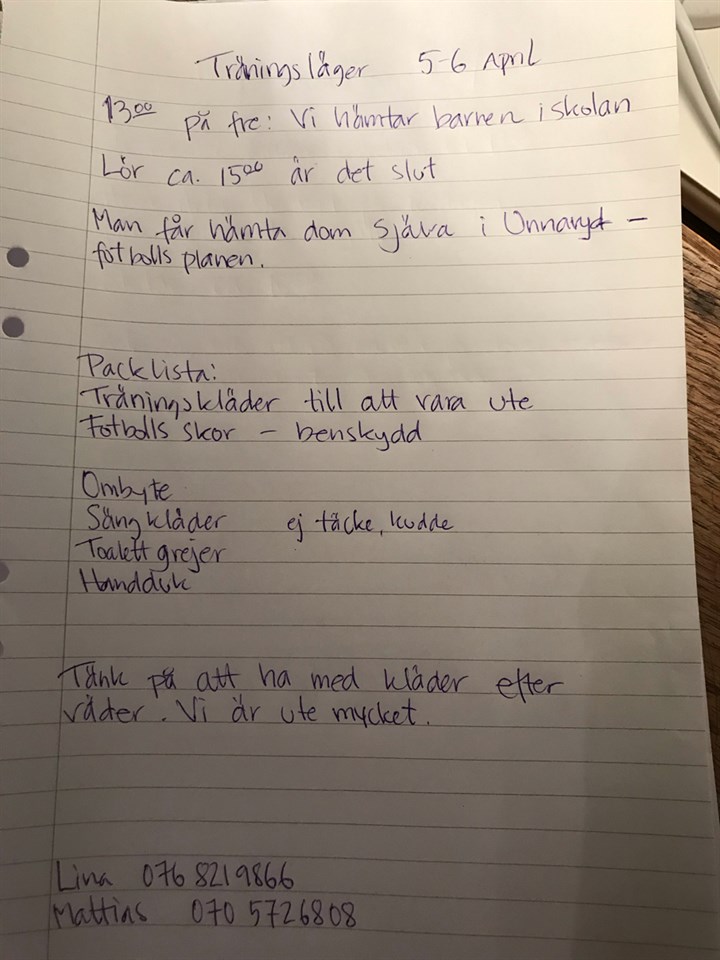 Info om lägret. Sista inomhusträningen på onsdag Sen tränar vi ute på Lomö. Måndagar: 16,45-18 Onsdagar: 16,00- 17,30 PF-0708 31 mar 2019 0kommentarer