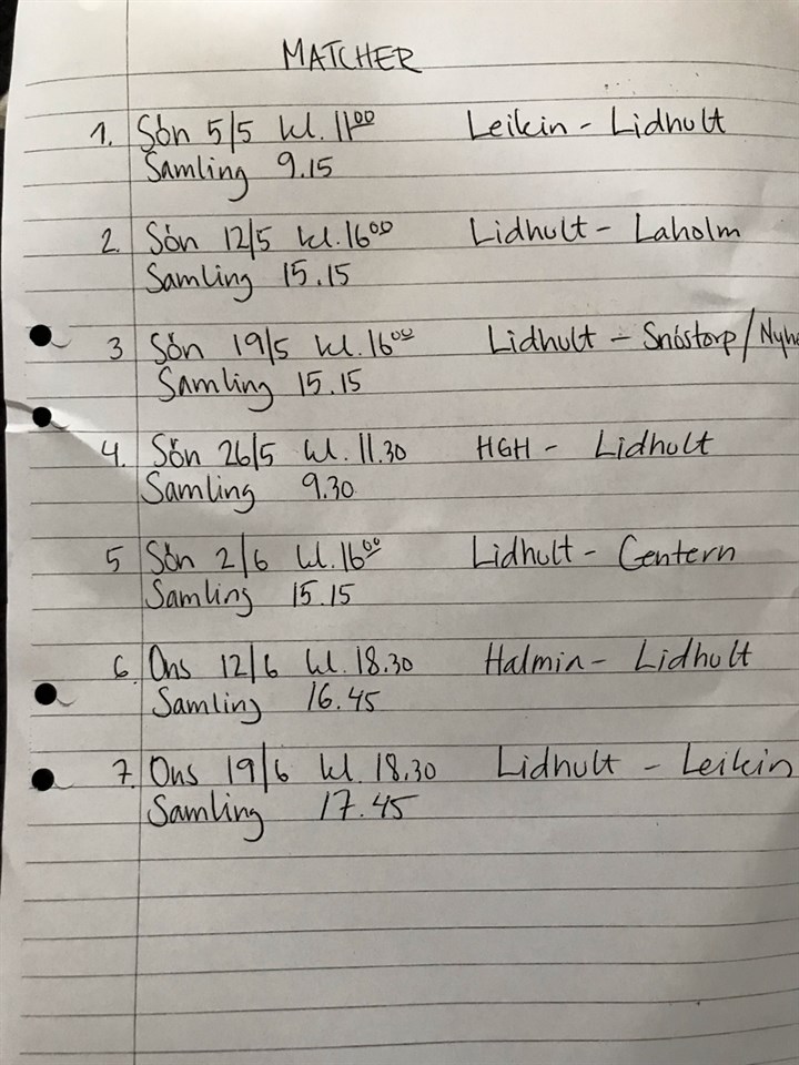 Samling 9.15 Lomö Dom som ska spela är: Hugo Noak Elis Isac Alexander Kelly Kevin Mohammed Ferishta Yazan PF-0708 2 maj 2019 0kommentarer