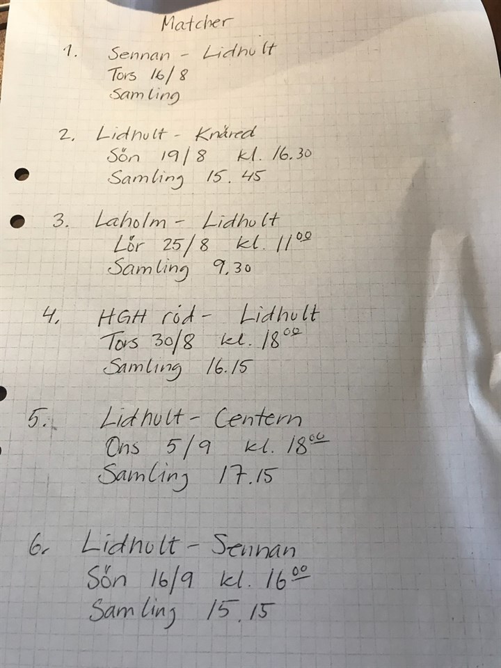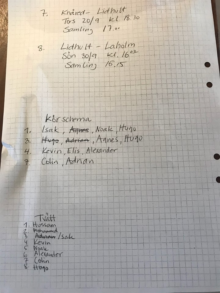 Speltider, kör och tvättlista. Byt med varandra om det inte passar PF-0708 21 aug 2018 0kommentarer