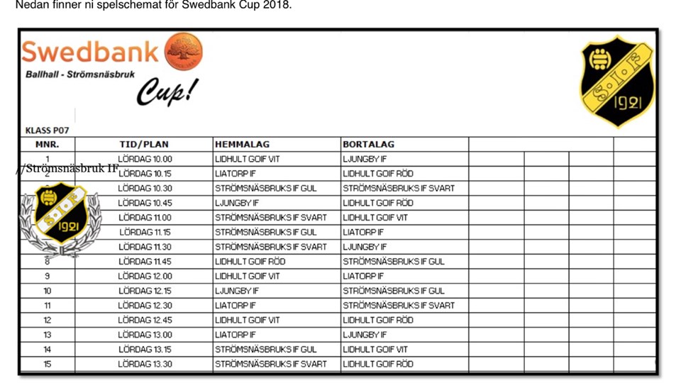 Träningsmatch lör. 24/3 kl 10.45-12 i Ljungby på konstgräs( ute ) Dans minne är en cup som vi ska spela lör 7/4 på konstgräset i Ljungby T-cupen 21/4 på sönderums IP Vi vill gärna ha en till som hjälper oss med träningarna. Vi kommer inte ordna någon aktivitet utanför fotbollen. Föräldrar får fixa det. Glöm inte att betala medlemsavgiften PF-0708 12 mar 2018 0kommentarer