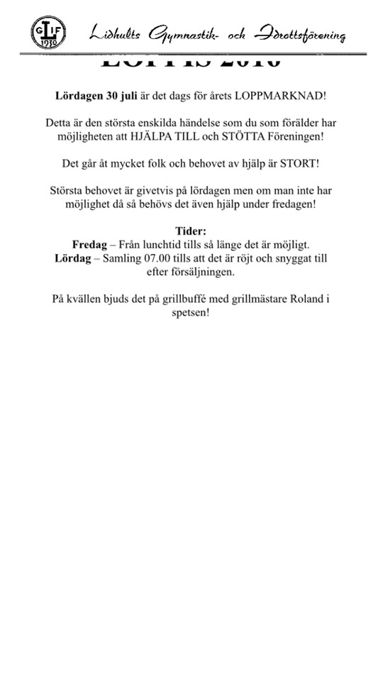 Lör 30/7 är loppisen, glöm inte att hjälpa till. Det behövs hjälp fre, lör sön så någon tid kan passa att hjälpa till. PF-0708 18 jul 2016 0kommentarer