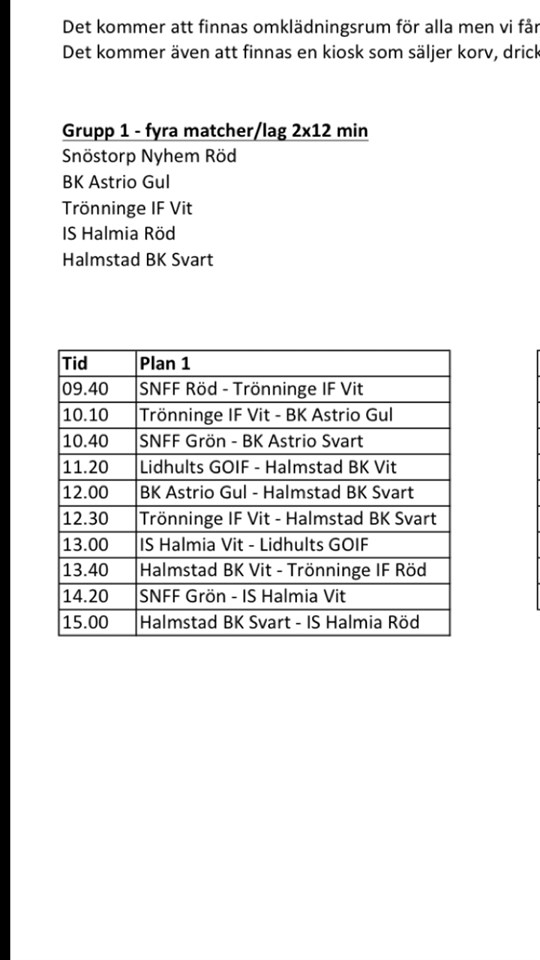 På lördag samlas vi 8.45 på Lomö. Nästa match är sön. 12/6 i Halmstad, vet inte spelschemat än. Sista matchen på vårsäsongen är 26/6. Lör. 6/8 är det match igen. Lite ordningsregler; man få äta godis/ kakor mellan matcher, för vi spelar många timmar. Men med måtta!! Duscha ( tjejerna om det går) Vi har inte gjort någon tvättlista men alla ska tvätta någongång. PF-0708 25 maj 2016 0kommentarer