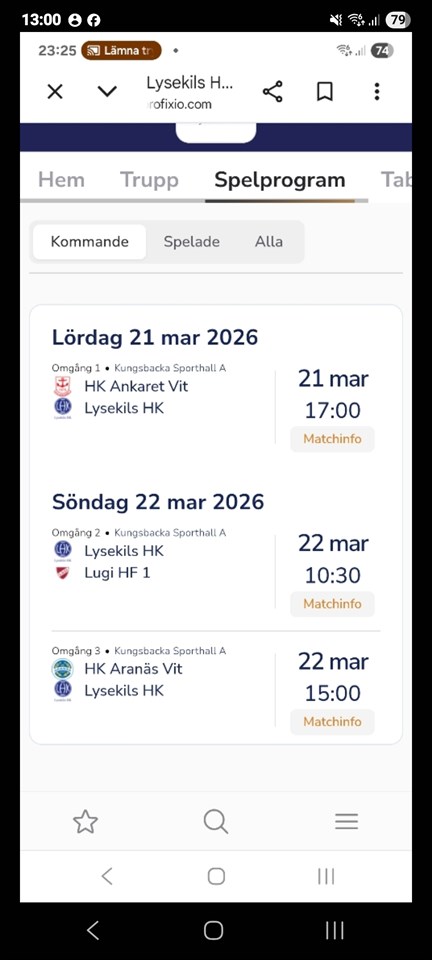 | Strömstad HK (hemma) | 28 mar, 14:45 |