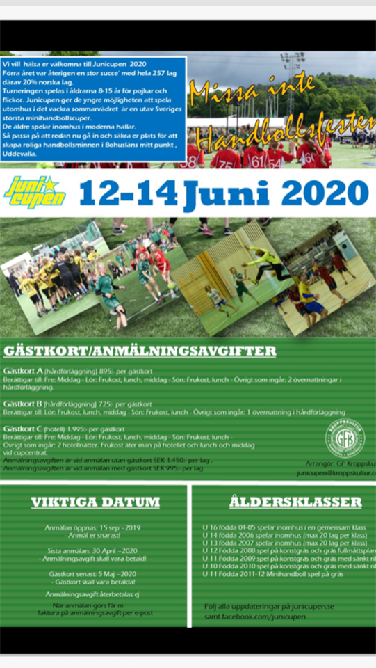 Välkomna • Imorgon kör träningen igång igen, kl 16.30 i Mariedalshallen. • 2/2 sammandrag Kronbergshsllen Ca 10-15 • 22/3 sammandrag Vänersborg • Junicupen 12-14/6 Uddevalla. Till denna cup önskar jag få in intresseanmälningar snarast i denna tråd, så vi vet om ett eller två lag ska anmälas Utomhus spel, nära och bra där vi åker fram och tillbaka 💪?
