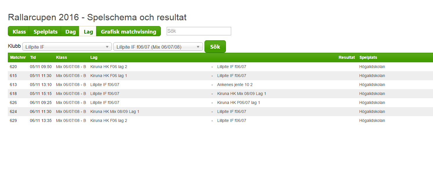 Spelschema Kiruna 9 februari
