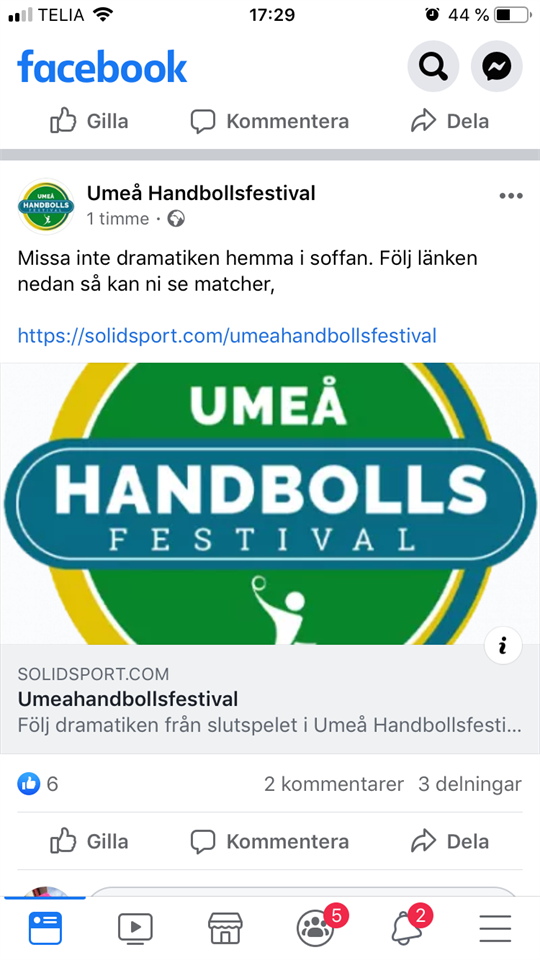 Nedan finns bild med länk till livesändning. https://solidsport.com/umeahandbollsfestival F-06/07 3 jan 2020 1kommentar
