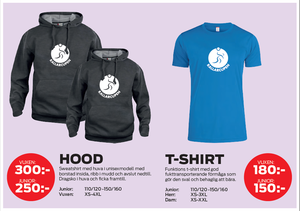 Om någon är intresserad av att köpa något från Rallarcupen så kan vi beställa detta. Var och en betalar själv men betällningen går via laget. Beställningen ska vara inskickad senast 18 oktober och betald 30 oktober. Jag lägger ut ett bokat där ni kan skriva vad ni vill ha och vilken storlek. Följ länken för att se vad som finns. http://rallarcupen.se/rallarcupen-souvenirer F-06/07 7 okt 2019 0kommentarer