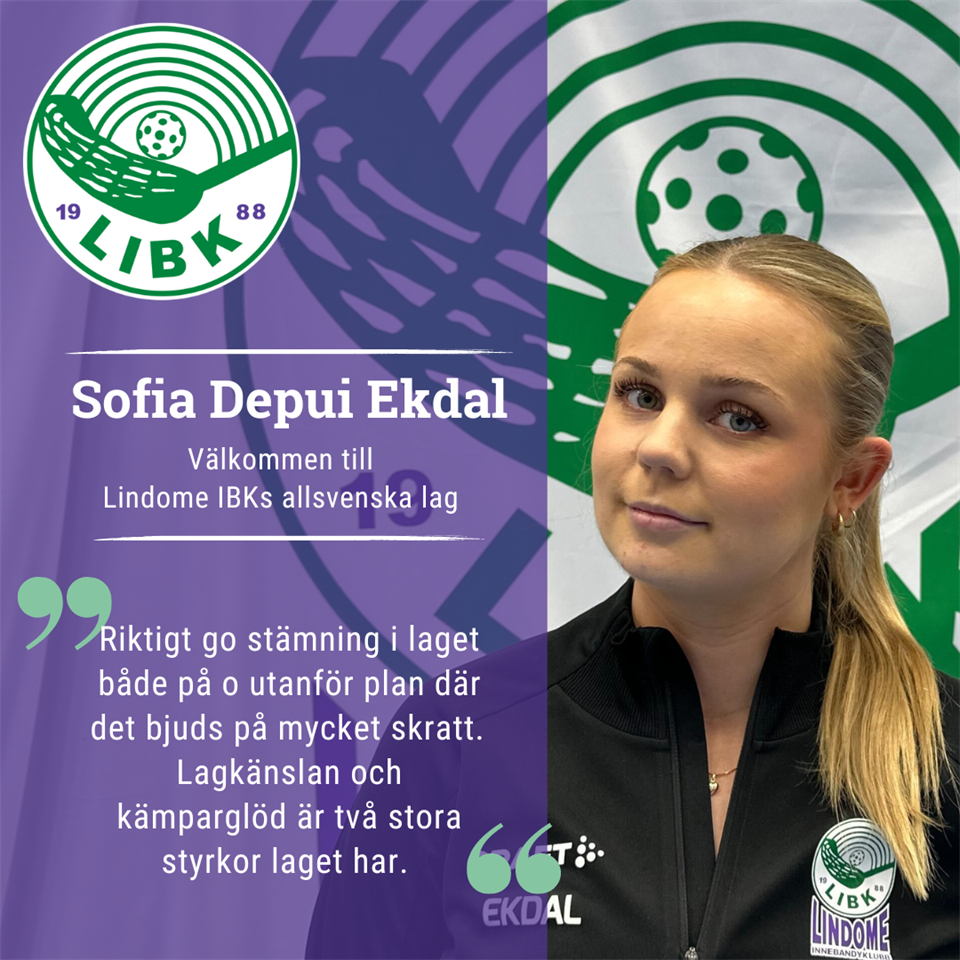 Vi har en liten late silly att presentera. Många av er känner säkert till henne då hon tillhör damer divison 1 I klubben, men nu har Sofia Depui Ekdal valt att ta en dubbeliscens med allsvenska laget. Mathias Bernvid om Sofia: "Jättekul att vi fått in Sofia, en spelare som har tränat med oss under en lång tid, och som har precis det vi söker hos en forward, en tuffhet, rakhet och en spelare som gör poäng. Sofia kommer göra mycket nytta hos oss och vi är väldigt glada att hon äntligen väljer att köra med oss." Varmt välkommen Sofia! Så roligt att du väljer att ta dubbellicens med oss! Hur kommer detta sig? "Jag har spelat i Lindome sedan jag var knatte och jag har tränat med allsvenskan under flera år, och det har väl legat i luften ett tag. Men jag trivs fortfarande i Div1 och vill inte lämna det helt. Dessutom har jag svårt att vara med på alla bortamatcher med allsvenskan pga plugg och andra åtaganden. Efter dialog med Mathias och Thomas kändes dubbellicens som en perfekt lösning!" Vilken känsla av laget har du? "Ett helt otroligt gäng med många starka personligheter både på och utanför planen. Sammanhållningen är superbra! I nuläget känns vi också väldigt formstarka vilket är kul!" Vad är lagets styrkor? "Vi jobbar alltid som ett lag och sliter hårt för varandra ute på plan. En lagmaskin helt enkelt och vi förlitar oss inte på enskilda spelare utan har en bredd." Vad är skillnaden mellan div 1 spel och allsvenskan? "Jag skulle absolut säga tempot självklart, det är stor skillnad. Men för min egen del är det mest det mentala då jag har helt olika roller i de olika lagen, vilket är en utmaning, men såklart givande!" Vad gör du helst en ledig dag? "Minns nog inte senast jag hade en helt ledig dag haha, men om jag varken har plugg, innebandy eller jobb så sover jag gärna länge och sedan en tur på stan med shopping och god mat!" Vad gör du när du inte spelar innebandy? Jag pluggar juridik på handels, umgås mycket med vänner och familj och jobbar extra i butik. Mycket mer hinner jag inte med!" Vi möter ju Växjö på lördag, årets sista match. Vad vet du om dem sedan tidigare? "Jag har ju inte tidigare mött dem, men från vad jag har hört är det ett bra lag. De har precis som vi en bredd och kan spela på många olika sätt vilket gör dem svåra att läsa av." Vad har ni haft fokus på I veckans träningar? "Finslipa detaljer skulle jag främst säga. Mycket matchspel och anfall-försvar." Vågar du dig på en tippning inför lördag och någon som sett het ut på träningarna? "Jag tror att vi fortsätter segertåget och tar hem vinsten med 5-3 efter en jämn match. Tycker att Lillis har sett het ut!" Tack Sofia och ett sent "välkommen" till Allsvenska laget!