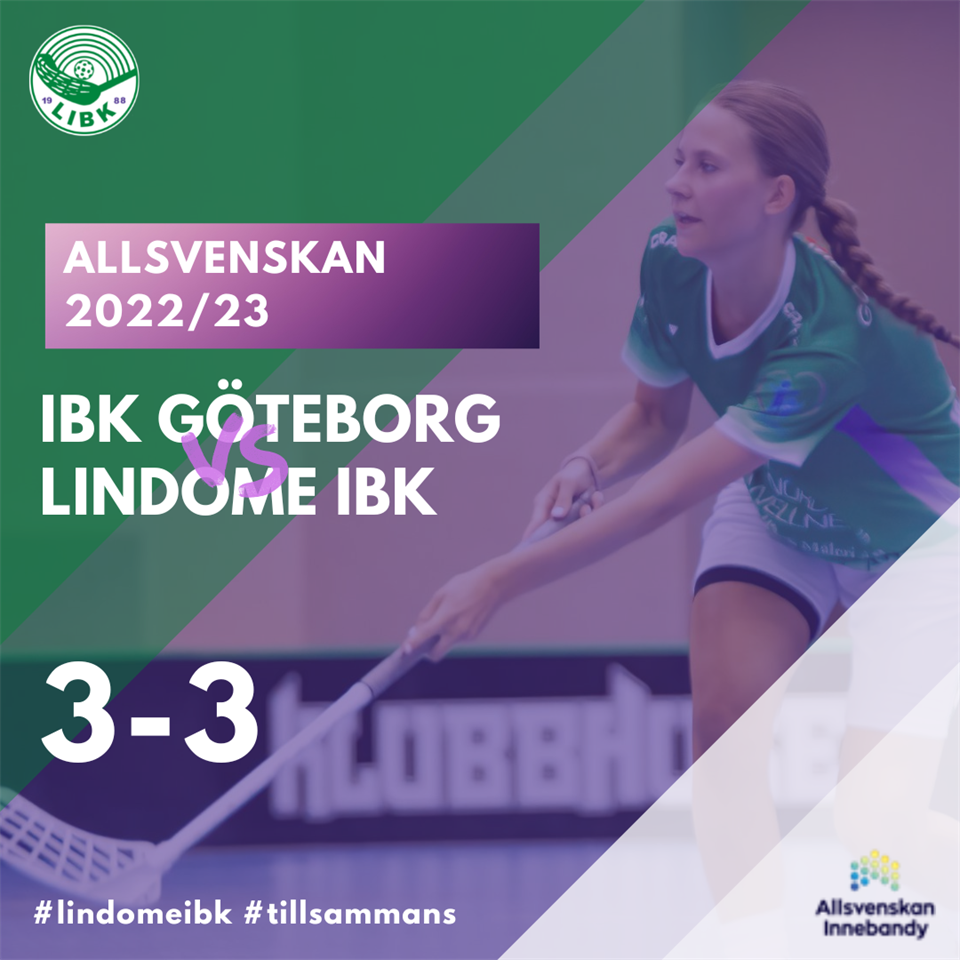 Matchreferat: IBK Göteborg - Lindome IBK (allsv), 11 februari 14:45, Lundenhallen Under första perioden är det lite ställningskrigs där inget av lagen riktigt kommer upp i sin fulla potential. Vidare i andra perioden övergår mer till derby-liknande former med tuffa närkamper och snabba omställningar. Det är en mycket jämn period men där vi tar över mer och mer bollinnehavet. Vi ökar tempot ytterligare i tredje perioden vilket ger oss flera fina chanser framåt där vi för första gången i matchen går upp i ledning. Göteborg trycker på i 6-5 i slutet av matchen och lyckas få in ett kvitteringsmål i slutminuten. Förlängningen är jämn och trots fina anfall så förblir den mållös. IBK Göteborg har ett mycket stabilt försvarsspel, kämpar alltid för varandra och duktiga att hitta in på mål med både spelare och skott. Vi fortsätter jobba vidare med vårt aggressivitet över hela banan och kreativiteten i anfallsspelet och vi tar med oss att vi hade ytterligare en match med ett stabilt boxplay! Matchens stjärnor: ⭐⭐⭐ Emilia Jansson ⭐⭐ Amanda Lööv Miljevic ⭐ Therese Landén /Rasmus Carlström, tränare Lindome IBK Slutresultat IBK Göteborg - Lindome IBK (allsv) 3-3 e. förl. (2-0, 0-1, 1-2, 0-0) Som matchens lirare utsågs #89 Jonna Karlsson i Lindome IBK och #13 Julia Johnsson i IBK Göteborg. Tack @FLOORBALLframedbyAK för fina bilder som vi kan använda. #lindomeibk #tillsammans #allsvenskan