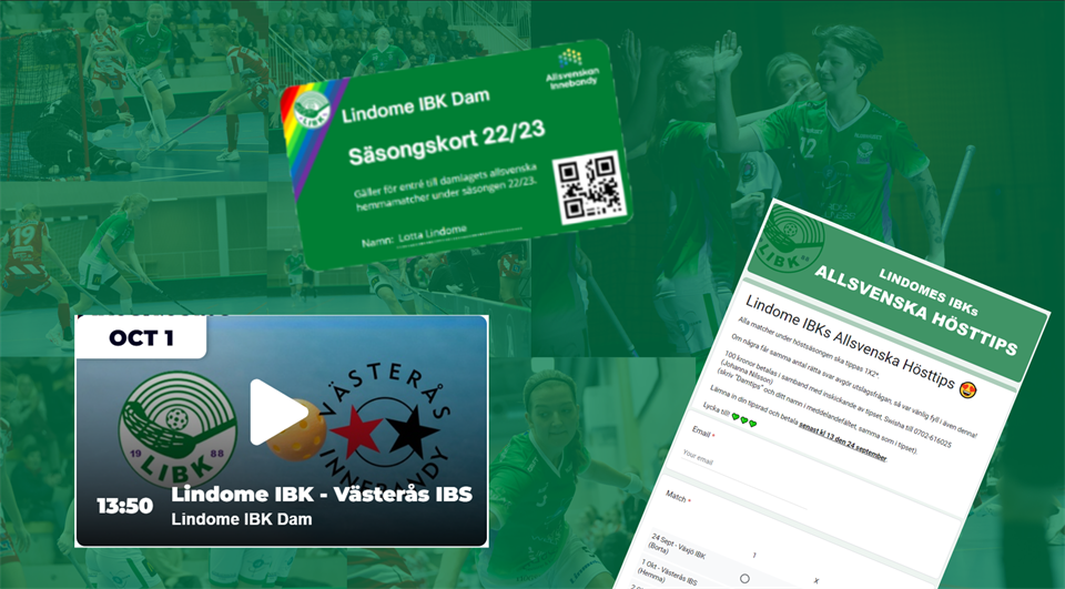 Våra matcher och matcharrangemang blir förhoppningsvis än mer händelserika denna säsong. I periodpauserna kommer du kunna vinna fina priser från våra samarbetspartners, se underhållande knattematcher och ta en god fika i paus. Inför, under och efter matcherna kommer vi på sociala media dela "inför matchen intervjuer", information, lotteri och annat skoj, så se till att följa damerna på deras kanaler: Hemsida Facebook Instagram Biljetter Förköpsbiljetter säljs via denna länk och via appen "TicketCo Wallet" fram till matchstart. Eventuellt resterande biljetter kommer säljas i entrén där vi accepterar betalkort, Swish, Apple Pay, Google Pay mm. Säsongskortet som du köper här gäller för entré till alla damlagets hemmamatcher i Allsvenskan Södra under säsongen 22/23. Med ett säsongskort har du alltid en reserverad biljett, du behöver inte boka nya biljetter till varje match samt du får en kopp kaffe i paus. Visa ditt säsongskort i entrén för att komma in snabbt och smidigt. Så passa nu på att få lite mängdrabatt och stötta samtidigt våra grymma tjejer! Livesändning Har du inte möjlighet att vara på plats kan du alltid streama matcher på Innebandy.tv. Köp abonnemang och stötta föreningen med 40 kr vi denna länk. Viktigt att veta är att varje förening/lag sköter själva filmningen så att det filmas beror naturligtvis på vilka resurser som finns. Du får även tillgång till alla livesändningar och videoklipp från herrarnas division 1, Svenska Cupen, vissa landskamper samt allt innehåll kategoriserat på Övrigt. För 99 kr i månaden, helt utan bindningstid, abonnerar du på allt detta. Det går även att köpa matcherna som ”pay per view”, även detta stöttar Lindome IBK. Länk till matcherna hittar du här. Damtipset för höstens matcher Stötta våra damer och gör hösten ännu lite mer spännande genom att tippa på höstens allsvenska resultat. 50% går till damlaget och 50% till en lycklig vinnare. Tippa här! OBS Lämna in din tipsrad (via länken ovan) senast kl 13 på lördag den 24 september, innan matchstart första matchen. 100 kronor betalas i samband med inlämnandet av tipset för att den ska gälla, helst via Swish till 0702-616025 (skriv gärna ”Damtips” och det namn som är på tipset i meddelandefältet). Vi ser fram emot att ses i Almåshallen under säsongen!