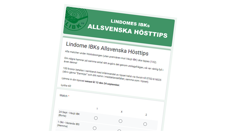 • LINDOMES IBKs ALLSVENSKA HÖSTTIPS