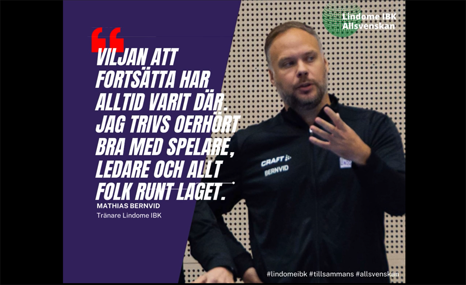 Först och främst, så himla kul att du fortsätter även nästa säsong! Berätta, hur gick dina tankar kring beslutet om att fortsätta eller ej? Viljan att fortsätta har alltid varit där, men det är mycket som skall pusslas ihop i övriga livet. När det väl gick att lösa så var det självklart att fortsätta. Jag trivs oerhört bra med spelare, ledare och allt folk runt laget. Lindome IBK har verkligen blivit en fast punkt för många i vårt lilla samhälle. Medlemmar, supportrar och partners har en stark klubbkänsla, tycker du detta märks och hur? Verkligen, Lindome har verkligen visat hur stort intresset är runt laget. Det är många som bryr sig och hjälper till för att spelare och ledare skall ha de så bra som möjligt, vi har haft ett publiksnitt som varit väldigt bra, på många bortamatcher har vi fler supportrar på plats än hemmalaget. (notering: vi har ett snitt på 117 i publik och ligger på andra plats i Södra Allsvenskan efter FBC Kalmarsund som har 220) Det är väldigt märkbart att vi har ett stort stöd från väldigt många, och det gör vår resa så otroligt mycket roligare. Vilka styrkor har du som tränare och om du är ödmjuk (som vi ju vet du är), finns det något du behöver förbättra och utveckla? Mina styrkor är alltid svårt att svara på, men hoppas att jag är en ärlig och rättvis tränare, även om de säkert finns spelare som inte tycker det i alla lägen. Försöker även vara så tydlig som möjligt, och tycker att vi fått laget att jobba efter samma mål och fått i gång ett grundspel som både är roligt att titta på, och i sina bästa stunder väldigt effektivt. Och ja självklart, det finns en del saker som jag behöver utveckla men jag känner att det blir bättre för varje år som går och förhoppningsvis är jag en ännu bättre tränare och ledare nästa år. Hur har samarbetet med övriga i staben fungerat och varit? Fantastiskt bra. Kan inte önska mig en bättre ledarstab. Nu har vi jobbat tillsammans i två år, rollerna är klara och tydliga, vilket gör jobbet enkelt för oss och spelarna. Endast en match kvar i nuvarande säsongs serie, hur skulle du sammanfatta säsongen? En klart godkänd säsong, vi har haft några dippar som man tyvärr alltid har under en säsong. Vi har gjort många bra matcher och när vi spelar på topp så är vi väldigt bra, vi behöver jobba för att hitta en jämnare nivå. Jag vet redan vad jag vill vi ska jobba på och vi kommer hitta nya delar i vårt spel som vi kommer jobba på under försäsongen och under nästa säsong. Vad är din bild av nuvarande spelartrupp? Mycket bra. Attityden har varit bra från dag ett, vi har träningsvilliga och ambitiösa spelare som sliter varje träning för att vi ska ta steg framåt. Spelartruppen har både bredd och spets vilket gör att vi har en tuff konkurrens på egentligen alla positioner. Utan att ta fokus ifrån den sista matchen men vad har du för övergripande tankar inför nästa säsong? Nästa säsong skall vi ta ytterligare steg till att bli ett bättre lag, mycket fokus kommer ligga på vår offensiv. Vi har även många moment som vi inte hunnit jobba igenom än men som vi kommer att börja jobba med inför nästa säsong. Nästa år kommer vi vara ännu bättre! En lite mer personligare fråga; har du några rutiner som du måste göra innan match för att det ska kännas bra? Nej, som ledare har jag försökt släppa sådant, det var mer när jag var aktiv själv. Vi har också pratat med Daniel Welin, sportchef i Lindome IBK, för att få hans syn på Mathias fortsättning som tränare: Vi är givetvis otroligt glada att Mathias fortsätter som tränare hos oss! Eftersom Mathias är en person som alla runt laget och föreningen trivs väldigt bra med, så var det en av våra första prioriteringar att säkerställa att han ville fortsätta. Mathias har exakt det vi söker hos en tränare i vår förening, vilket är att skapa resultat samtidigt och minst lika viktigt att skapa en god stämning. Vi är även väldigt stolta över den utveckling vi sett på laget de senaste två åren sedan Mathias tog över. Vi är övertygade om att laget kommer ta ytterligare steg under nästa säsong tillsammans. Givet alla utmaningar vi haft de senaste åren tycker jag tabellen visar vilket otroligt arbete Mathias och övriga i ledarstaben gjort tillsammans med laget. Nu är fokus att avsluta serien på ett bra sätt innan vi tillsammans blickar in på nästa säsong! Tack för pratstunden, både Mathias och Daniel. Vi från supporterskaran ser vi också fram emot framtiden med er båda!
