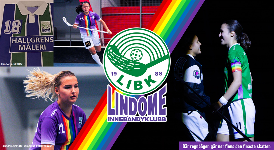 Ni som följer damernas händelser som nyheter eller på sociala media har kanske märkt att det under några år börjat smyga sig in en regnbåge på lite olika sätt. Damernas bortaställ kommer även i år vara prydd med en vacker regnbåge! Det finns både en historisk anledning och en väldigt aktuell anledning till vår regnbåge; 1988 startade den förening som idag heter Lindome IBK. Vi hette inte så från början utan klubbnamnet var Regnbågens IBK och orsaken var faktiskt baserat på hur klubbstället såg ut, ett melerat ställ i ”regnbågens alla färger”. Klubbens namnbyte skedde först när verksamheten flyttades till Almåshallen i Lindome och av naturliga och geografiska skäl ansågs då namnet Lindome IBK passa bättre. Men vi kan samtidigt konstatera att regnbågens andra viktiga betydelse som också ofta förknippas med HBQT-rörelsen passar oss också väldigt bra; stolthet, mångfald, respekt för medmänniskor och tolerans. Därför väljer vi i damerna att också lyfta fram denna vackra och betydelsefulla regnbåge lite extra i vår kommunikation. Läs mer om klubbens historia här.