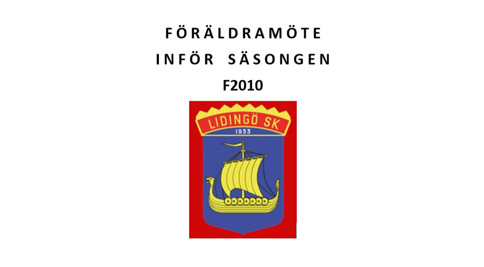 Hej Lagföräldrar! Nu på tisdag 27 september kallar vi till obligatoriskt föräldramöte inför säsongen. Klockan 17:30 Samling LSK Hallen Tjejerna tränar 16:30-17:45. Räkna med att föräldramötet kan behöva minst 30min från 17:30. Vänliga hälsningar Ledarteamet F2010 Peter, Lottie, Kristoffer, Sofia, Mathilda, Johan