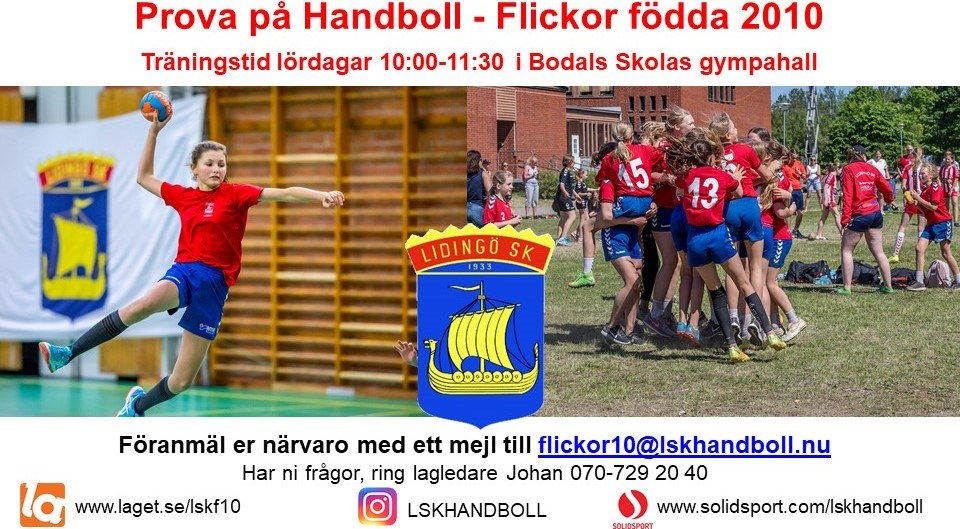 Hej Laget! Vi vill få fler lagkompisar och visa hur kul vi har det när vi tränar och spelar matcher. Fråga gärna kompisar som är födda 2010 och som ni tror skulle kunna ha lika kul med oss. Inom någon dryg vecka så kommer det att trilla ner ett kort från oss i brevlådan hos alla flickor födda 2010 här på Lidingö. Men fråga gärna redan nu om du känner någon som kanske vill prova på att spela Handboll med oss. Visa bilden i nyheten, den går även att kopiera och skicka vidare. Nu kör vi! Lära Skratta Kämpa - LSK