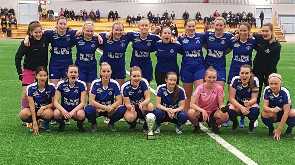 På bilden ser ni glädjen i laget efter fjolårets avgörande sista omgång som innebar nytt kontrakt i division ett för LSK Dam. Hela truppen har under helgen samlat krafterna för att hitta samma glädje i Arnes Bil Cup, den prestigefyllda årliga turneringen som är en självklarhet att vara med och spela. Det är inte många år sedan som Luleå SK varken fick delta på herr- eller damsidan så därför är detta en av de absolut första höjdpunkterna som vi prioriterar högt under en lång och tråkig försäsong. Matcherna fram till finalen har sett ut enligt följande: Luleå SK - Lira BK, 1-0 Ett kompakt försvarande Lira gjorde det svårt för LSK under hela matchen, dock styrdes spelet av det blå laget som under första halvlek rullade boll bra och skapade flera farliga chanser där dock inlånade Tea Lundmark i Liras mål var precis så stabil och säker som hon brukar vara. Tålamodet började i andra halvlek tryta aningen mer och då Lira valde att ställa backlinjen extremt högt upp resulterade det i fler längre bollar från LSK som ständigt oroade Liraförsvaret. Målet görs när Felicia Johansson bryter in från vänsterkanten och spelar bollen mellan backarna till Elin Engström som når bollen och delikat vickar in den med yttersidan. I slutet blir Lira lite desperata och LSK tappar sitt lugn men Olivia i mål ställs inte på några särskilt farliga chanser utan kan hålla nollan. Luleå SK - Morön BK F19, 4-1 En strålande första halvlek mot Moröns unga talanger där LSK verkligen visade att man är på en betydligt högre nivå. Målen är ett resultat av flera vackra sekvenser: 1-0, Hög press av LSK ger till slut bollen till Elin Engström som hittar in mellan försvarare till Felicia Johansson som lägger in bollen bredvid målvakten. 2-0, Hanna Bäck driver snabbt upp längs kanten och hittar in till Felicia Johansson som spelar vidare till Lotta Forsberg som hänger upp den i nättaket. 3-0, Moa Blomquist hittar in till Felicia Johansson vid förstastolpen som vänder runt för att hitta Fanny Andersson som gör mål med en välplacerad vänster. 4-0, Fanny Andersson driver fram bollen och hittar Elin Engström som med en lätt touch friställer Lotta Forsberg som sätter bollen i mål. I andra halvlek blir spelet naturligt lite mer avmattat från LSK där man gör många byten och går ner i tempo. Morön spelar upp sig och reducerar på en hörna men i slutändan är det ett kontrollerat LSK-lag som spelar av matchen. Luleå SK - IK Grand Bodö 2, 1-0 Dagens finalmotsåndare väntade i sista gruppspelsmatchen för ett redan finalklart LSK. För Grand Bodö gällde det att ta poäng för att vara säkra på finalplatsen och inte vara beroende av resultatet i matchen efter. LSK fokuserade i denna matchen på att ligga lägre med laget och spela energisnålt inför söndagens match. Bodö visade flera fina offensiva kvaliteter med vassa kantlöpningar men LSK:s backlinje var precis som under övriga matcher otroligt stabil och framförallt Josefine Mella fick ta ett gäng löpningar på sin kant men hade inga problem att stänga den. LSK gör till slut 1-0 efter ett riktigt snyggt mål där Sofie Benzler hittar Sandra Landström som nickskarvar vidare bollen till Fanny Andersson som på egen hand lobbar över försvararna och är först på sin egen boll för att även lobba den över målvakten. Vackert! Matchen spelas sedan kontrollerat av och även om Bodö försöker jaga kvittering så håller Caroline Blom i mål och försvaret ihop det hela på ett mycket förtjänstfullt sätt. Finaldags, kl 14.25 Idag kl 14.25 är det dags för final och vi gör det med ett enda fokus, 100% inställning för att vinna och ta LSK:s första historiska seger på damsidan samt den blott andra segern totalt sett för klubben. Vi möter på nytt IK Grand Bodös duktiga unga lag som verkligen har kompetens att störa oss så det kommer inte att gå att slappna av för en sekund. Vi hoppas på många intresserade som tar sig till Arcushallen för att supporta oss hela vägen in till guldet!