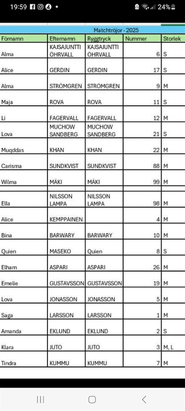 Vi stavar Gustafsson med F och inte V. Står rätt på laget men vet inte varför det stod med V i denna lista