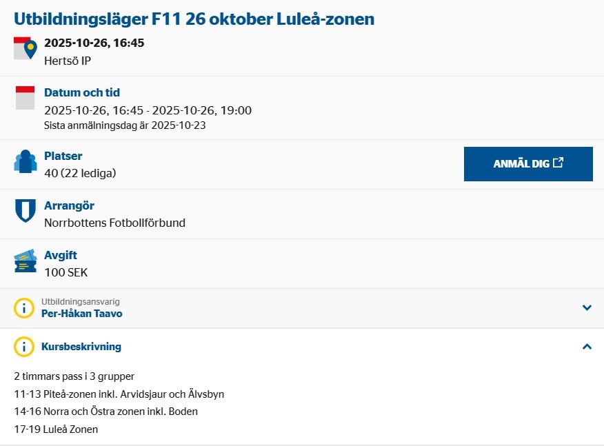| 23 okt | Futsal skola/träning 28-29 okt |